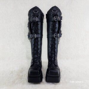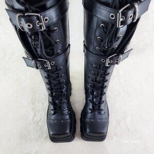 Demonia Black Combat Boots with Chains