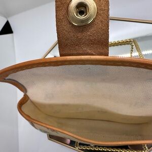 Dooney & Bourke Vintage Multicolor Monogram Wristlet with natural Leather Trim