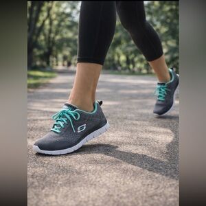 Skechers BREAK FREE Casual Trail Running Gray Blue Shoes Sneakers size 6,5. In good condition. Just a little bit of discolouration on the front.
