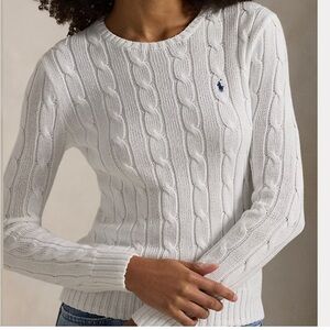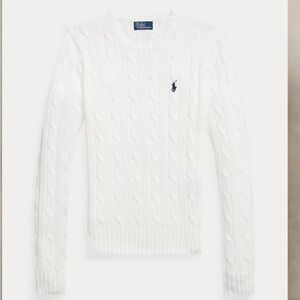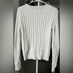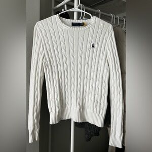 Ralph Lauren White Cable-Knit Scoop Neck Sweater with Navy Pony
