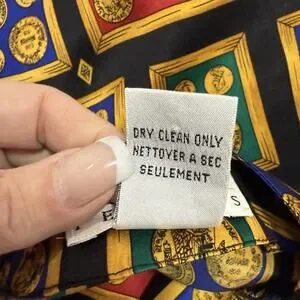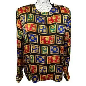 Vintage Talbots Petites Silk Blouse Size 14P Novelty Money Print French Cuffs