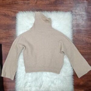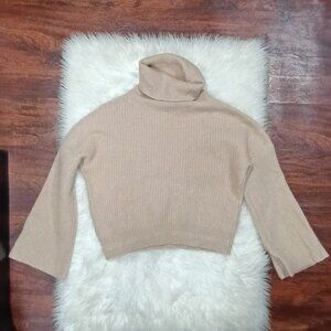 Joie Cashmere Ribbed L Turtleneck Sweater Cropped Beige Soft Pink