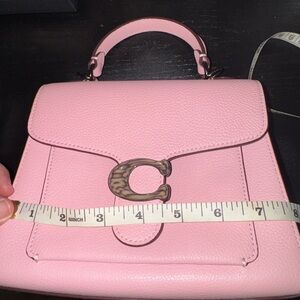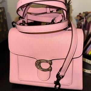 Chic and stylish light pink crossbody from Coach. Features a textured leather finish and elegant hardware.