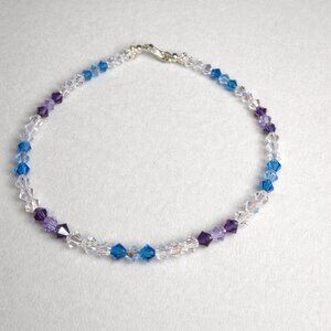 Handmade genuine crystal beaded bracelet featuring a beautiful purple and blue ombre design that sparkles in the light. Lightweight, elegant, and perfect for everyday wear or stacking.