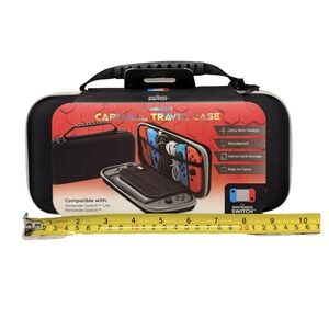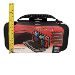 The Nintendo Switch/Switch Lite Carryall Travel Case in black by Gamewave is a durable and shockproof travel case designed specifically for Nintendo Switch consoles. Made of nylon, this travel case provides ample protection for your gaming devices and accessories while on the go. It is compatible with various Nintendo Switch models, including the Lite and OLED versions, making it a versatile option for gamers who want to keep their devices secure and organized when traveling.