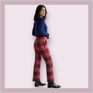 Trina Turk Red Plaid Straight Leg Trousers