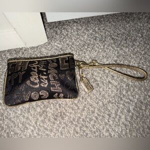 Coach Poppy Storypatch Glam Black & Gold Rare Limited Edition Wristlet