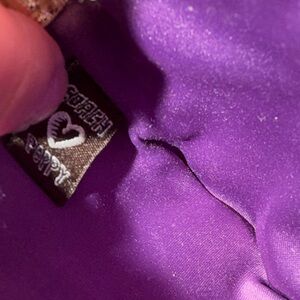 Coach Poppy Wristlet Small Wallet Pouch Black Gold Leather Trim Canvas Graffiti Rare Collection Piece in Black Canvas With Gold Leather Trim And Hardware Front Leather Coach Patch Logo Purple Satin Fabric Lined 4" × 6" in Excellent Condition.