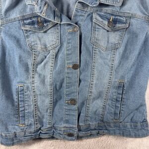 New Look Womens Medium Wash Blue Denim Trucker Jacket Size L Long Sleeve Button