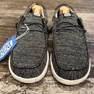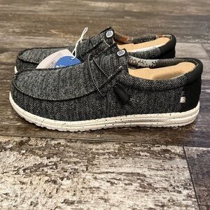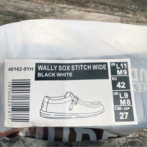 Hey Dude Wally Sox Stitch Wide Lace Up Loafers Shoes Mens 8EE Black White NEW