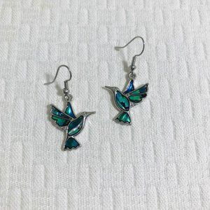 Abalone Hummingbird Earrings Silver Tone