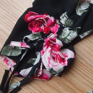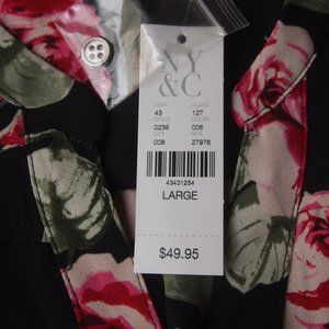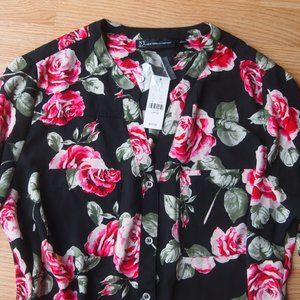 Gorgeous New York & CO flowered button down blouse, size large. Top features cinched sleeves with a tie, v-neck hem, pockets and buttons down the front. Gorgous rose pattern design. Brand new with tags still attached!