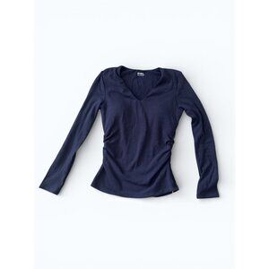 A beautifully minimal top designed with a relaxed batwing silhouette and flattering side ruching that softly defines the waist. The lightweight micro ribbed cooling fabric makes this an easy everyday piece that feels polished but effortless.