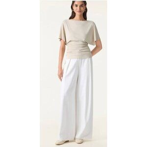 OGL Sandwashed Batwing Boatneck Ruched Top Morning Mist NWT Cooling Micro Rib