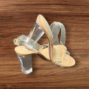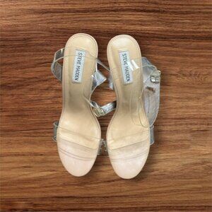 Steve Madden Womens Camille Peep Toe Ankle Strap Sandals, Clear Size 9.5