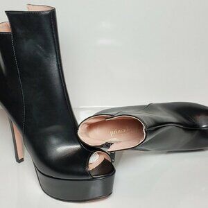 Stilettos have a high front over the leg. The heel is a platform in the toe box.
