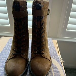 NWT Born Cass Block Heel Boot. Suede upper. Inside zipper closure. Almond toe. Cushioned footbed. Approximately 6” shaft. Approximately 10” leg opening. 3” stacked block heel. Color is Rust (Tobacco) Distressed.