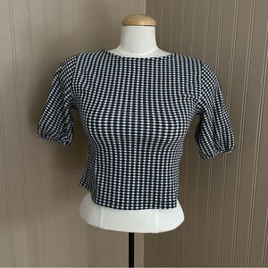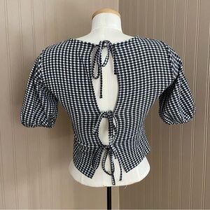 Kiabi Black & White Gingham Tie Back Crop Blouse Top Women’s Size XS/S