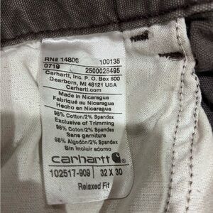 Notes: Classic Carhartt workwear style with durable stretch canvas and relaxed fit for comfort and mobility.
