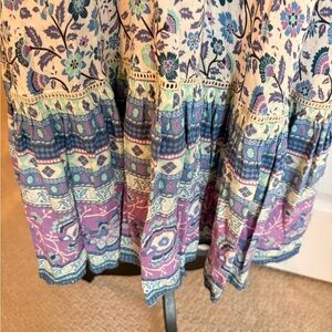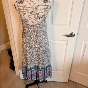 Spell Floral Midi Dress in Cream, Blue, Teal and Purple Small EC