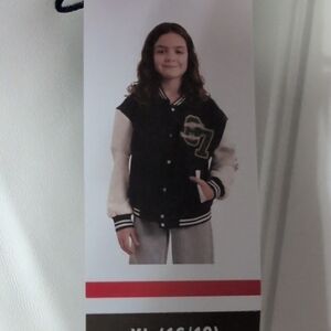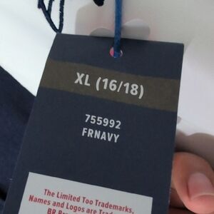 Limited Too Navy and White Letterman Jacket with Green Patch