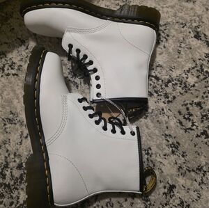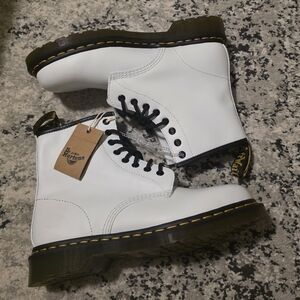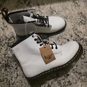 Dr. Martens 1460 Smooth Leather Lace Up Boots White Black Womens 9 NWT
