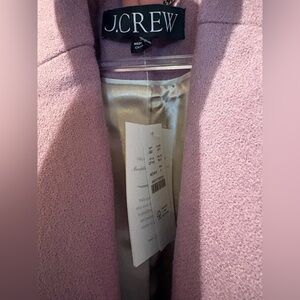 Tailored fit single-breasted wool coat from J. Crew. Notch lapels and two front welt pockets. Clean, streamlined silhouette for everyday wear. Length is 42”. Soft lavender-pink hue adds a subtle feminine touch. The coat is new with tags attached.