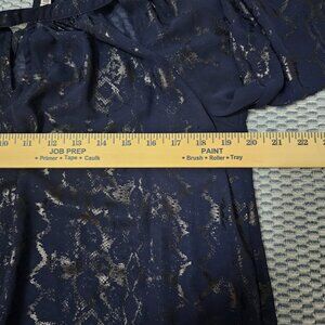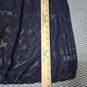 Jennifer Lopez Navy Metallic Snakeskin Burnout Top, Keyhole Blouse Size Medium