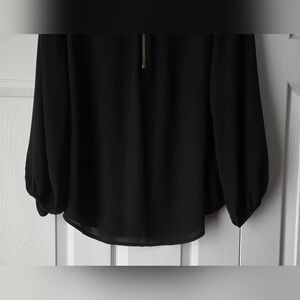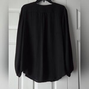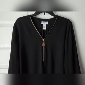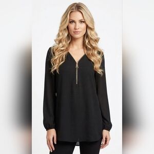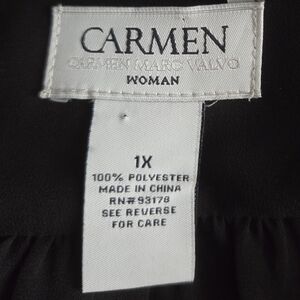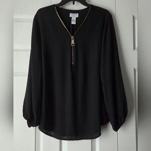 Carmen Marc Valvo Black V-Neck Zip-Front Long Sleeve Blouse Size 1X