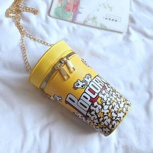 Novelty yellow popcorn fashion purse. Can be used as a crossbody or shoulder bag