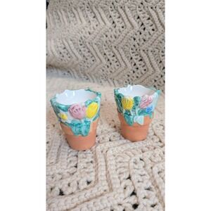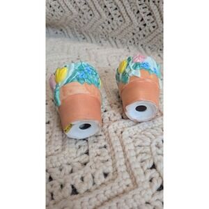 Vintage Ceramic Flower Pot Salt and Pepper Shakers Set Spring Floral Garden 2pc