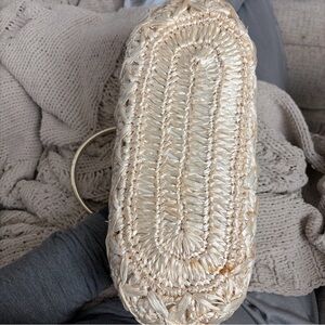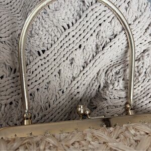 Vintage 1960’s straw raffia gold frame kiss lockWoven Straw Cream Top-Handle Bag