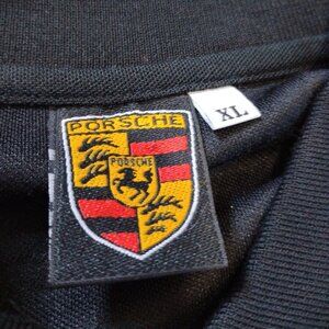 Deadstock Porsche Polo Shirt Back Hit - Size X-Large, Measures p2p=23" length=30" - Black Color Shirt With Red Trim