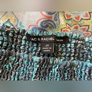 Zac & Rachel Teal Paisley Off-Shoulder Blouse