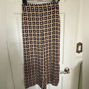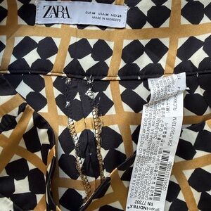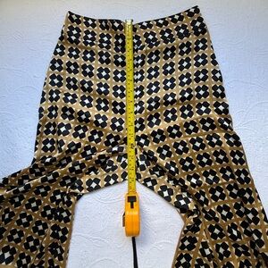 ZARA Printed Wide Leg Pants Geometric Camel & Black Side Zip Size M Boho