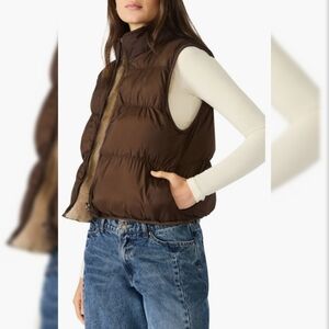 Steve Madden Brady Reversible Puffer Vest Brown Nylon & Faux Fur Women's Large