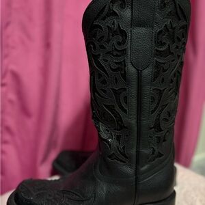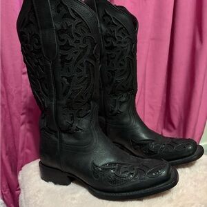 J.B. Dillon Black leather and sequined western weather and sequin western
