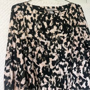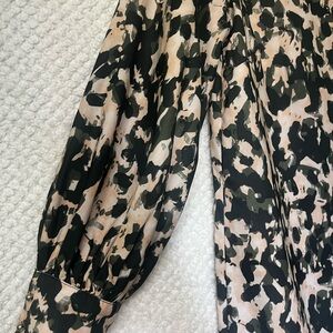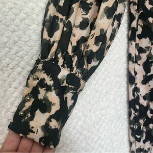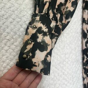 H&M Womens Shift Dress Black Green and Cream Patterned Long Sleeve Dress Small