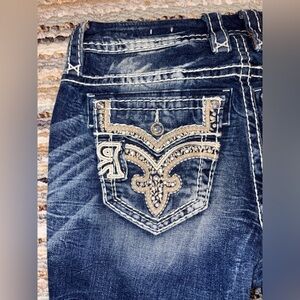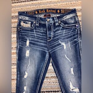 #RockRevival #BlingJeans #Size28 #32Inseam #Y2KStyle #WesternFashion #PremiumDenim #FleurDeLis #Cowgirl #Rhinestone