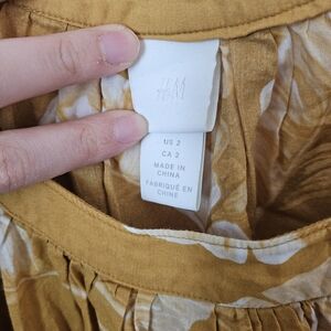 Chic mustard maxi dress with white floral pattern. Flowy and stylish. Ideal for summer/vacation use!! I'm normally a size 4/6, but it is quite oversized.