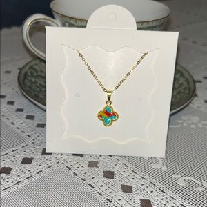 New Gold-tone Clover Pendant Necklace with Multi Turquoise Enamel
