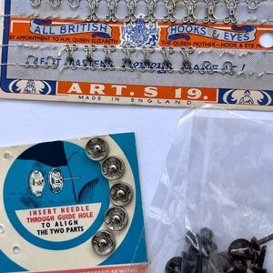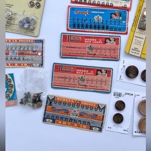 This is just a big, lotta vintage sewing supplies that I have collected over the years. There is everything from hooks for bras or corset tree two buttons, stuffed animal eyes, all kinds of stuff. Please make sure you have a look some of the cards may not be full, so please make sure to blow up all the pictures to see what you were getting.