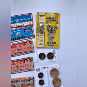 Lot of vintage sewing supplies, hooks, buttons more