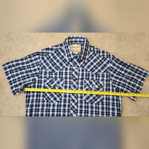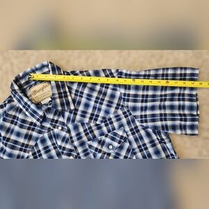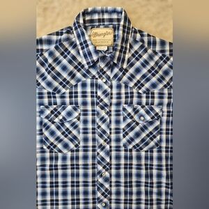 Wrangler Large Pearl Snap Plaid Shirt Blue Western