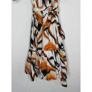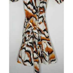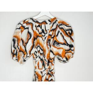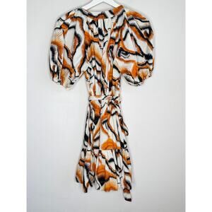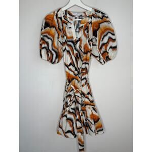 Willa Story Rachel Puff Sleeve V-Neck Babydoll Mini Dress Orange Black Womens XS