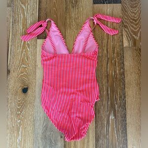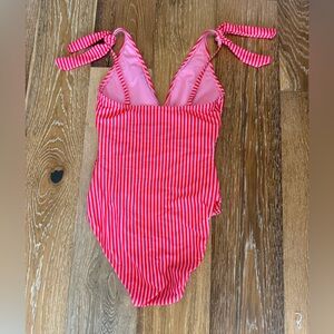Ellen Tracy pink and red striped one piece swimsuit