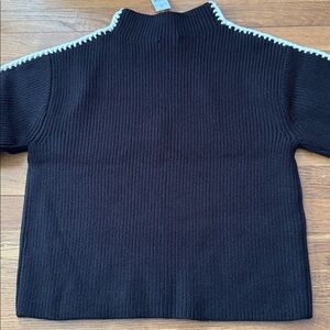 Ann Taylor black mock neck sweater w/ivory stitching details. Size XS. NWT. See pics for measurements. Acrylic/poly/nylon blend. Soft and cozy.