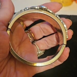 Gold tone vintage Art Deco Bracelet with detailed filigree adorned with stones