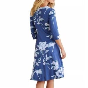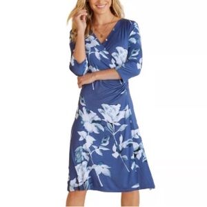 NWT Soft Surroundings Hyannis Faux Wrap Midi Dress Blue Floral 3/4 Sleeve XS