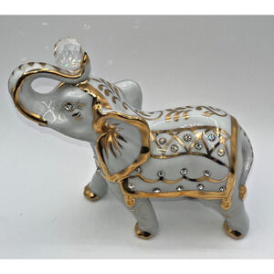 Vintage Capodimonte figurine Elephant with Big Swarovski Crystal Ball Holding